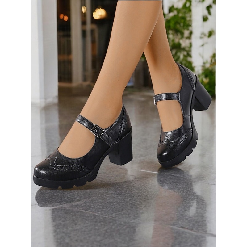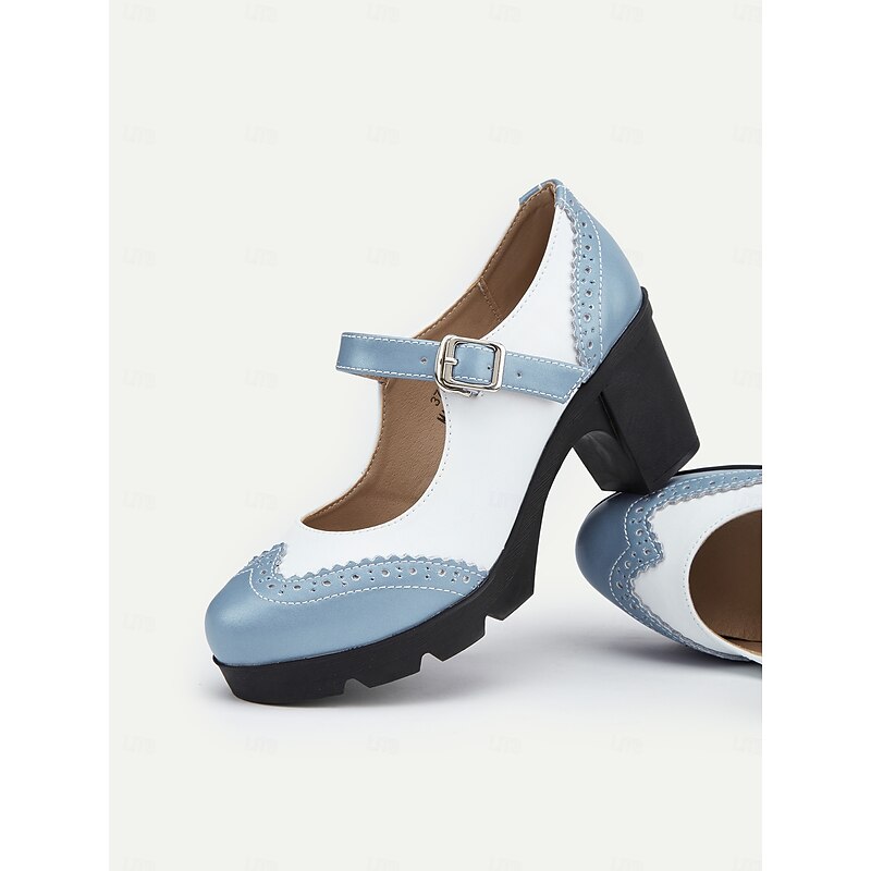 Why Choose Women's Blue and White Mary Jane Chunky Heel Shoes with Brogue Detailing, Vintage Style cozy Pumps for Office, Parties, and Daily Wear?