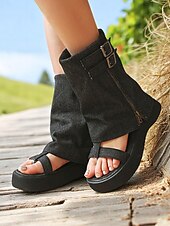 Women's Denim Gladiator Platform Sandals – Retro Buckle Detail, Open Toe, Casual Festival Style for Summer Streetwear 11