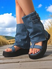 Women's Denim Gladiator Platform Sandals – Retro Buckle Detail, Open Toe, Casual Festival Style for Summer Streetwear 10
