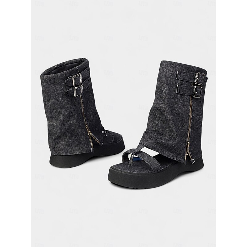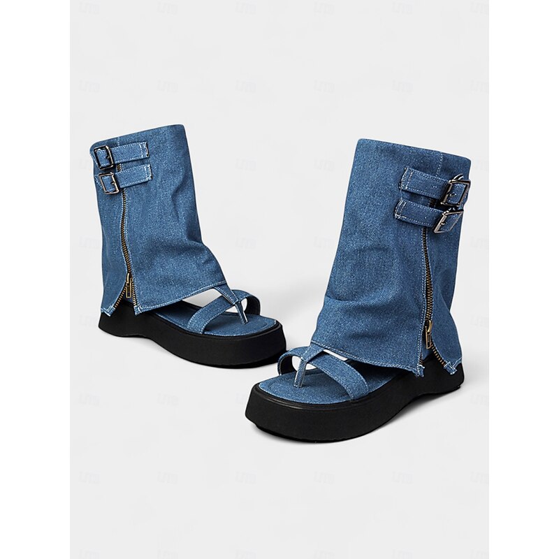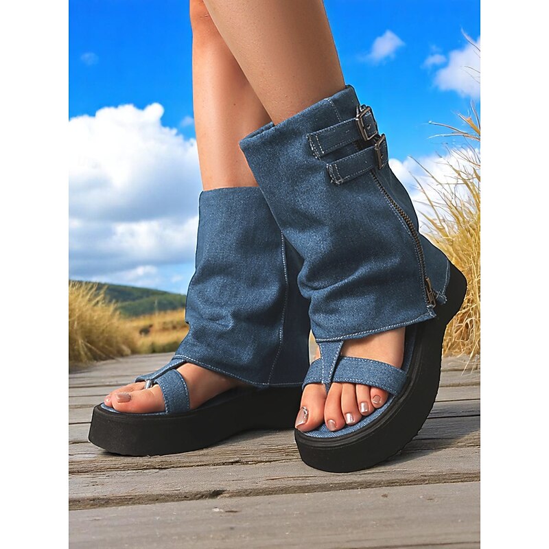 Women's Denim Gladiator Platform Sandals – Retro Buckle Detail, Open Toe, Casual Festival Style for Summer Streetwear 1