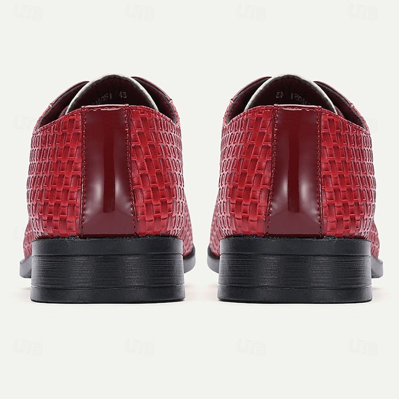 Men's Red Woven Faux Leather Dress Shoes – contemporary Lace-Up Oxfords with Patent Leather Accents for Christmas,Formal & Casual Occasions