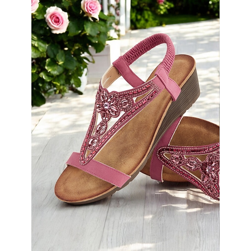 Why Choose Women's Rose Pink T-Strap Wedge Sandals with Rhinestones – fashionable Summer Shoes for Garden Parties & Daily Wear?
