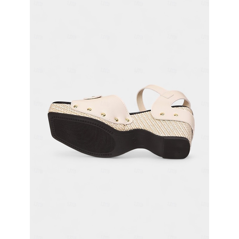 sizzling ! Women's White Platform Wedge Sandals with Double Buckle Straps – Boho - Chic Vacation Footwear for Beach Getaways & Summer Trips