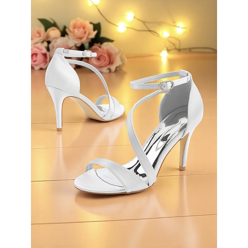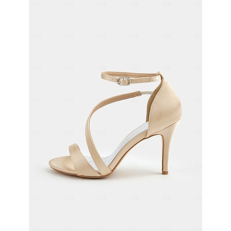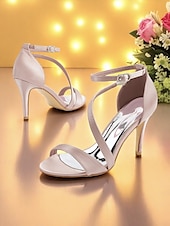 Elegant Nude Satin Peep-Toe Wedding Heels for Women - Comfortable Stiletto with Ankle Strap, Perfect for Evening Events 24