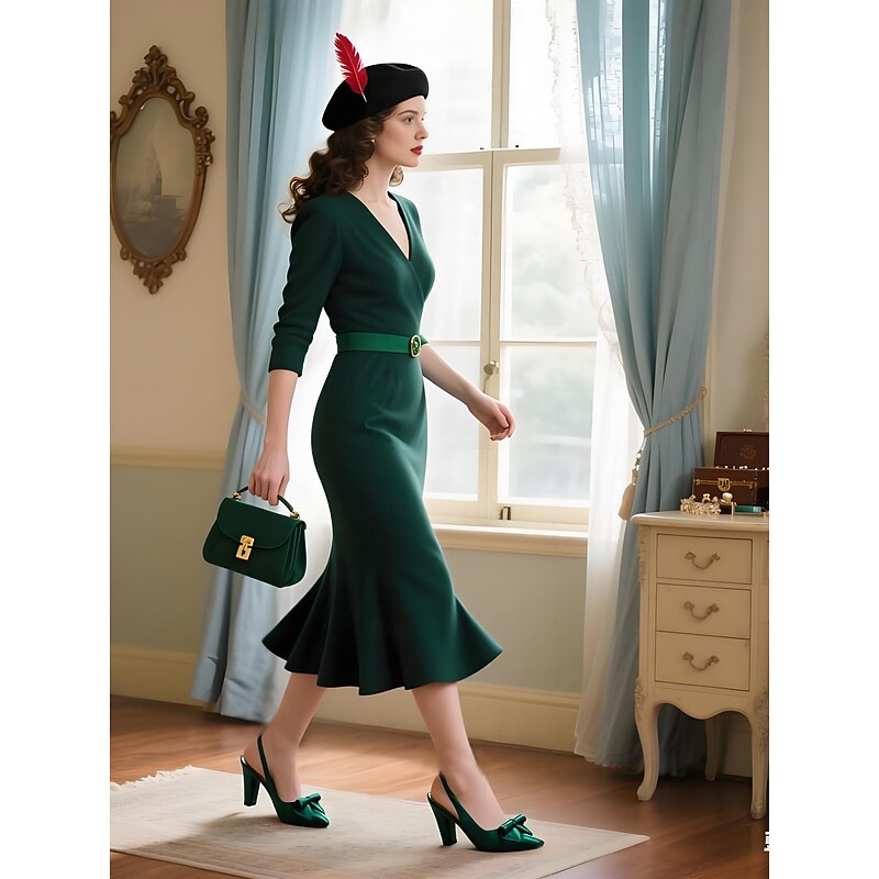 Women's 1950s Vintage  Green Satin Slingback Heels with Bow – Elegant Pointed Toe Mid Heel Shoes for Weddings, Parties, and Formal Occasions 15