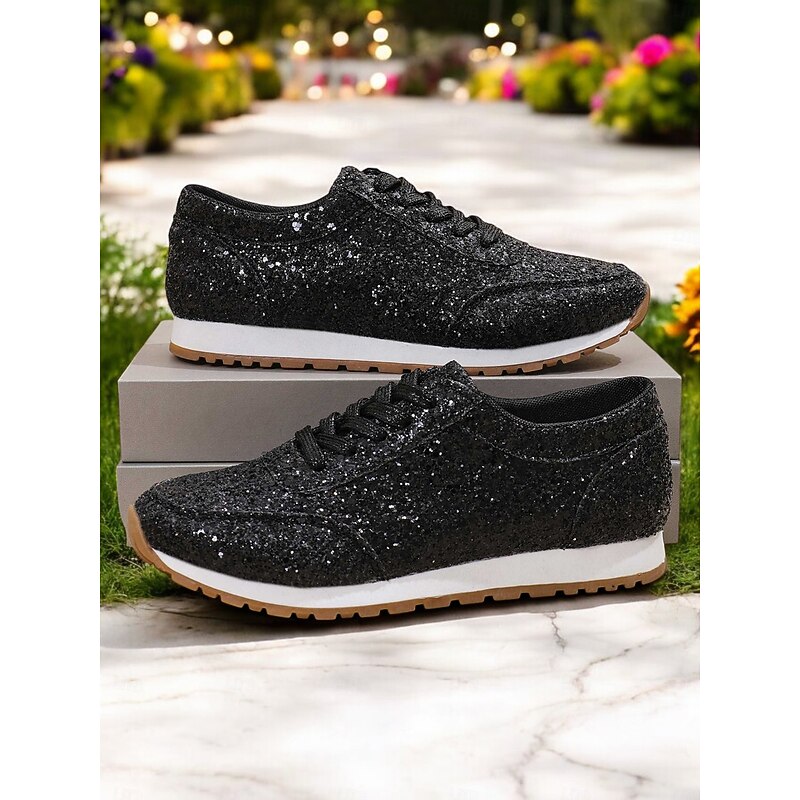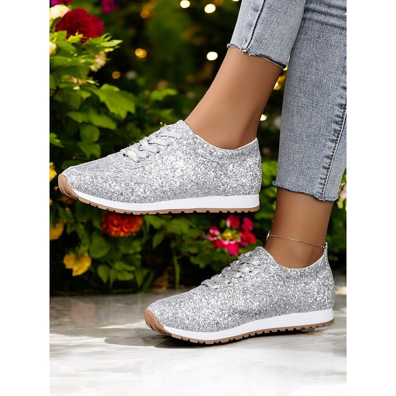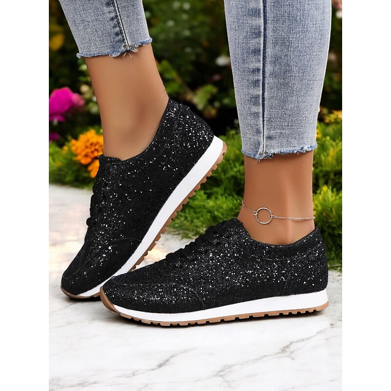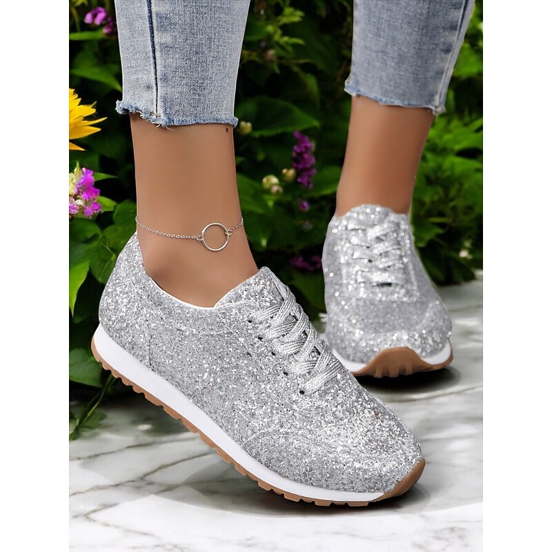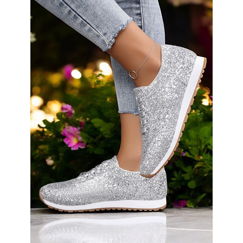 More information about Women's Gold Glitter Lace-Up Sneakers with cozy Sole, Lightweight Design and Trendy Style for Parties, Casual Outfits and Festive Occasions