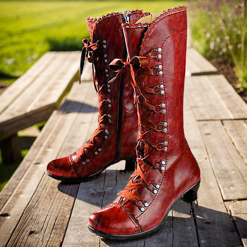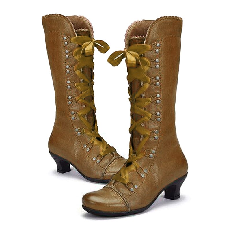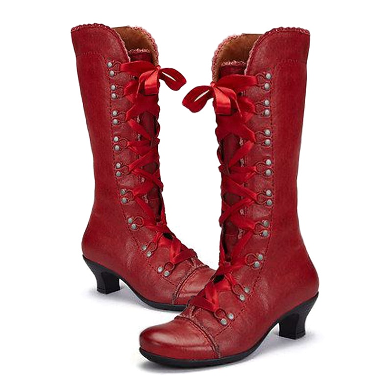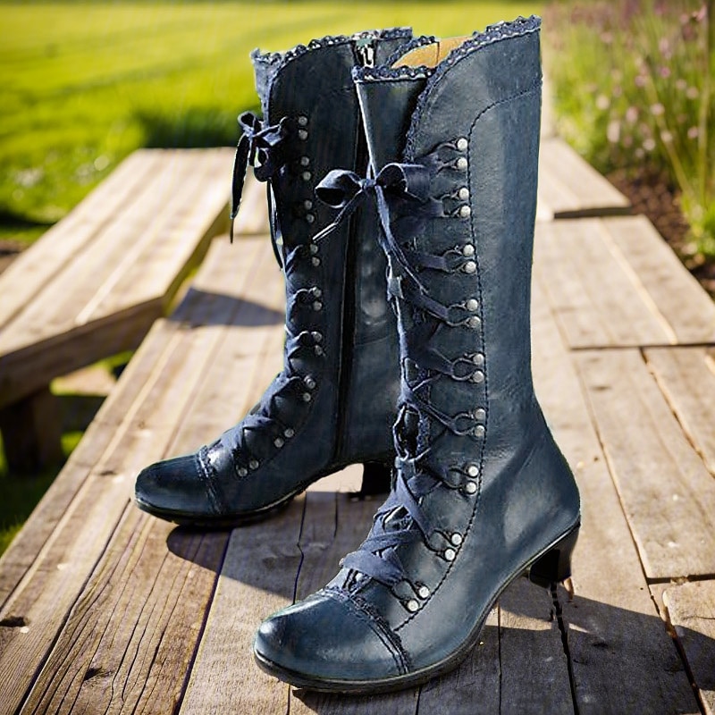 More information about Women's Vintage Gatsby Victorian Lace-Up Mid-Heel Black Faux Leather Boots - Steampunk Gothic Style for Daily Wear, Cosplay, and 1920s Gatsby Parties