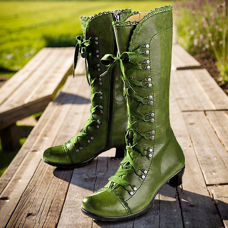 Women's Vintage Gatsby Victorian Lace-Up Mid-Heel Black Faux Leather Boots - Steampunk Gothic Style for Daily Wear, Cosplay, and 1920s Gatsby Parties 4