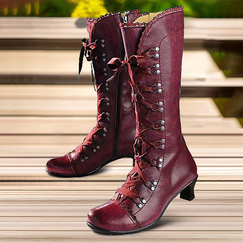 Women's Vintage Gatsby Victorian Lace-Up Mid-Heel Black Faux Leather Boots - Steampunk Gothic Style for Daily Wear, Cosplay, and 1920s Gatsby Parties 12