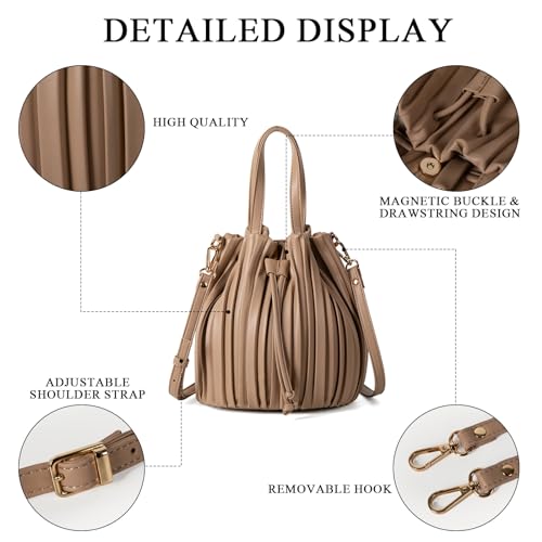 Mini Faux Leather Bucket Bags for Women Drawstring Crossbody Bucket Bag Purses Pleated Shoulder Handbags 7