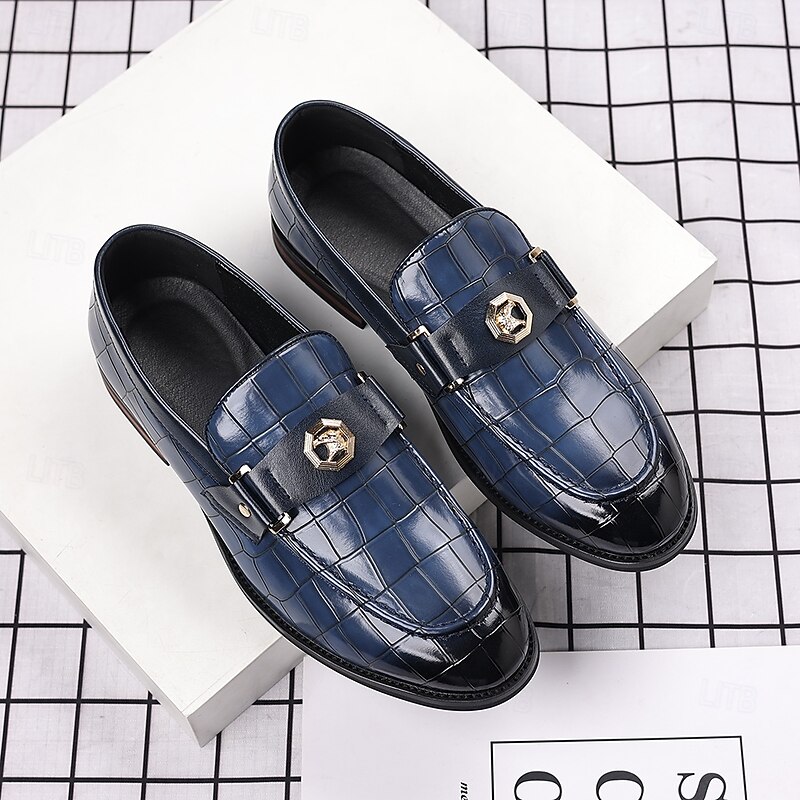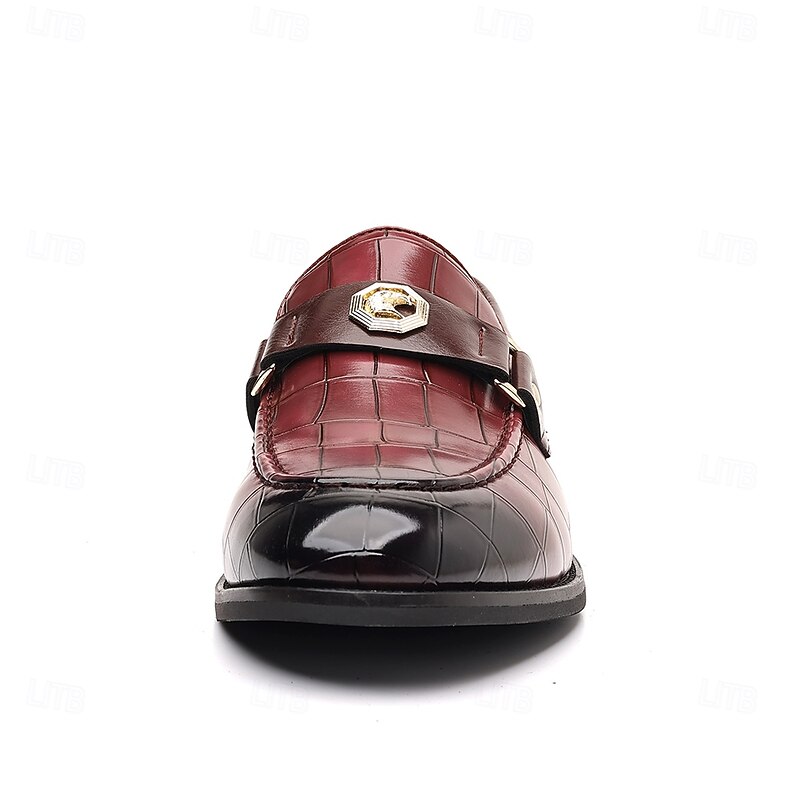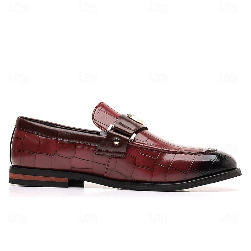Why Choose Men's Burgundy Crocodile Embossed Faux Leather Loafers – Decorative Metal Buckle Dress Shoes for Businessmen, Formal Events and Banquets?