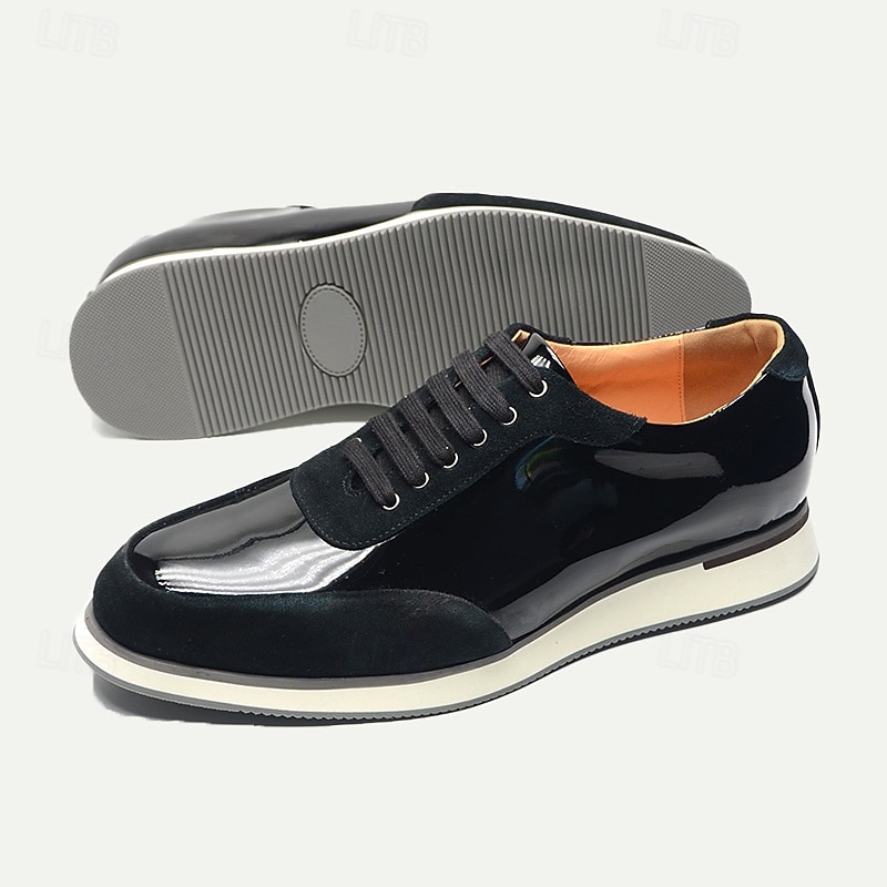 Highlights [Fabric] Crafted with premium cowhide, these men's lace-up shoes showcase a sophisticated blend of materials, integrating a luxe patent leather finish with suede accents. The interior is lined with leather for an enhanced comfort experience, ensuring these shoes are not only trendy but also durable. [Silhouette] The design features a low-top oxford silhouette that effortlessly merges formal elegance with casual comfort. The round toe shape offers a timeless profile, suitable for a variety of occasions. [Design Highlights] These dress shoes are completed with a sleek patent leather and suede combination, boasting a stylish, modern aesthetic. The lace-up closure allows for a personalized fit, while the distinctive white EVA outsole not only provides a contrasting visual appeal but also ensures slip resistance and stability. [Occasions] Ideal for both daily wear and special occasions, these versatile shoes transition seamlessly from formal events to casual outings. Whether you're heading to the office or enjoying a relaxed weekend gathering, their refined look complements any wardrobe choice. [Size Range] Available in a comprehensive size range from US6/EU39/UK5 to US13/EU46/UK12, these shoes cater to a wide range of foot sizes, ensuring a perfect fit for every wearer. Perfect for everyday use. top-grade materials and excellent craftsmanship ensure long-lasting durability.