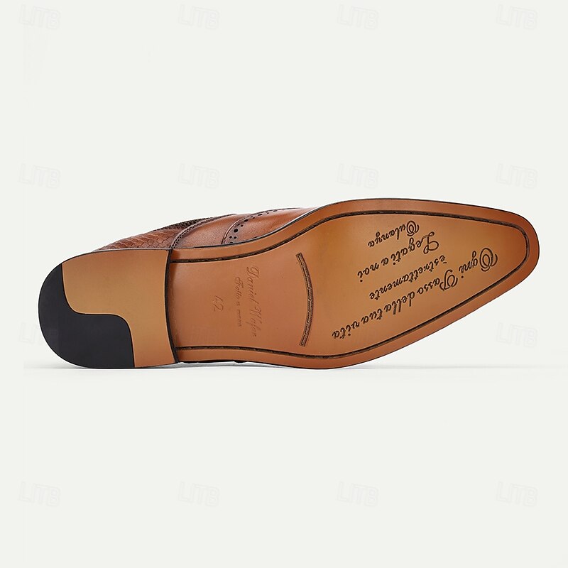 Men's Brown Ankle Boots with Brogue Detailing & Snakeskin Accent - Premium Cowhide Leather Dress Boots for Formal & Casual Wear 7