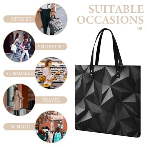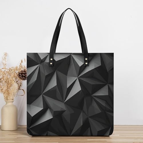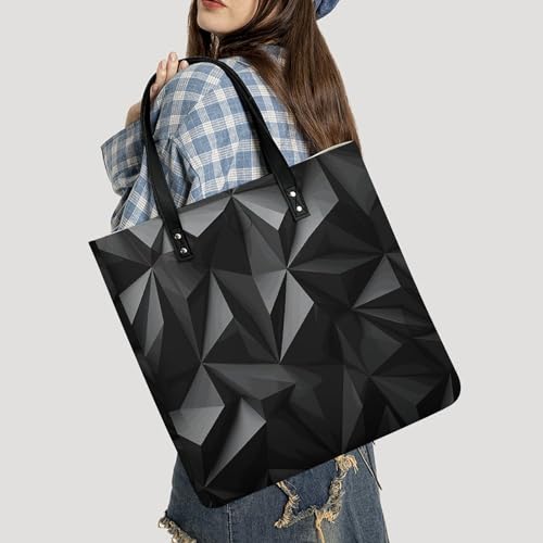 Black Geometric Handbag Leather Tote Shoulder Bag Satchel Handbag with Top Handles Large Casual Handbags with Shoulder Work Bag for Women Travel Purse Dating Gift