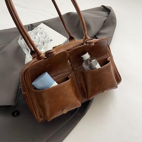 Leather Top Handle Bags for Women Top Handle Purse Retro Handbag Multi Pocket Satchel Bag Shoulder Bag Underarm Bag 5