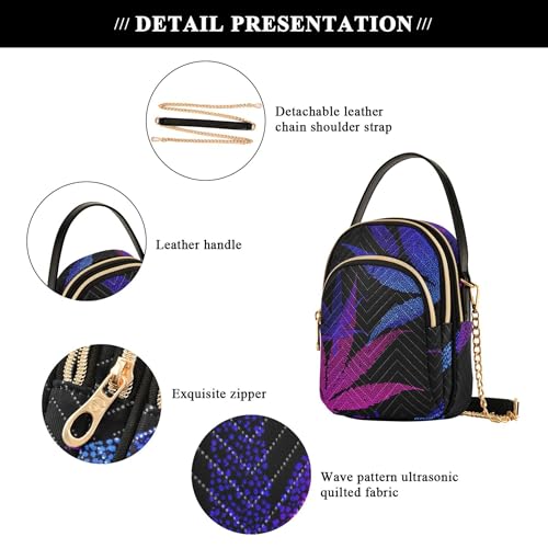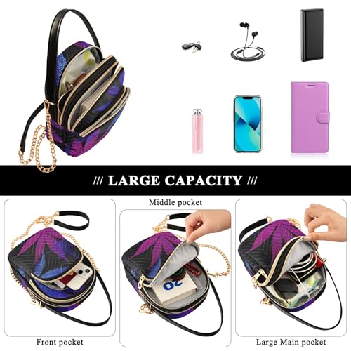 Single Shoulder Handbags Animal Floral Chain Strap Phone Wallet Handbag Quilted Ladies Tote Crossbody Satchel Purple Blue Leaves Black 6