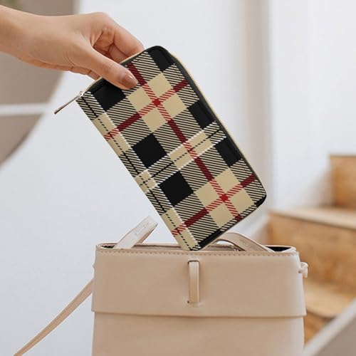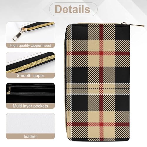 Travel Purse Fashion Design, Huge Storage Capacity Wallet, Cute Decor Wallet, Long PU Zipper Wallet Compatible with Tartan Plaid Pattern