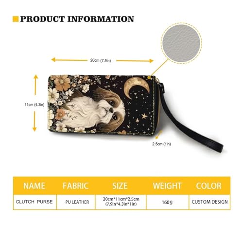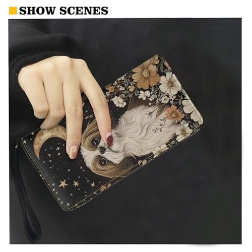 Womens Cute Wristlet Wallet Shih Tzu Dog Moon Print Soft Leather Zipper Long Purse RFID Blocking Card Holder Clutch Organizer 7