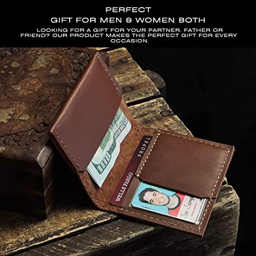 Why Choose Running Horse Handmade Mens Bifold Credit Card Holder Wallet Slim Minimalist Veg Tan Pure Leather Front Pocket I.D Card. Unisex Gift Carteras Para Hombres (Tan)?