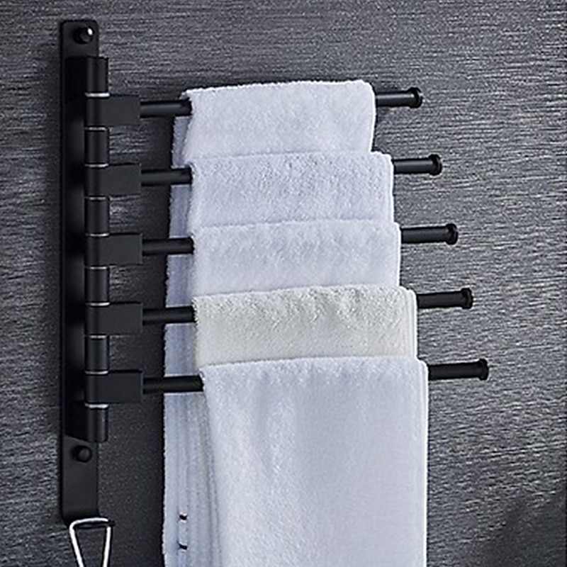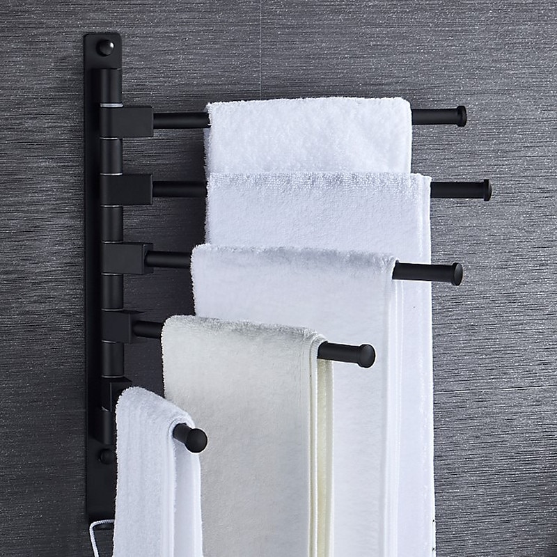 Why Choose Matte Black Towel Bar with Hook,Self Adhesive Wall Mounted Swing Arm Contemporary Aluminum Multi Rods Towel Bar 1PC?