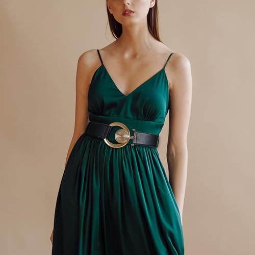 Black Wide Belt for Women Adjustable 2-Inch Wide Design with Gold Buckle Chunky Belt Perfect for Dresses and Coats 5