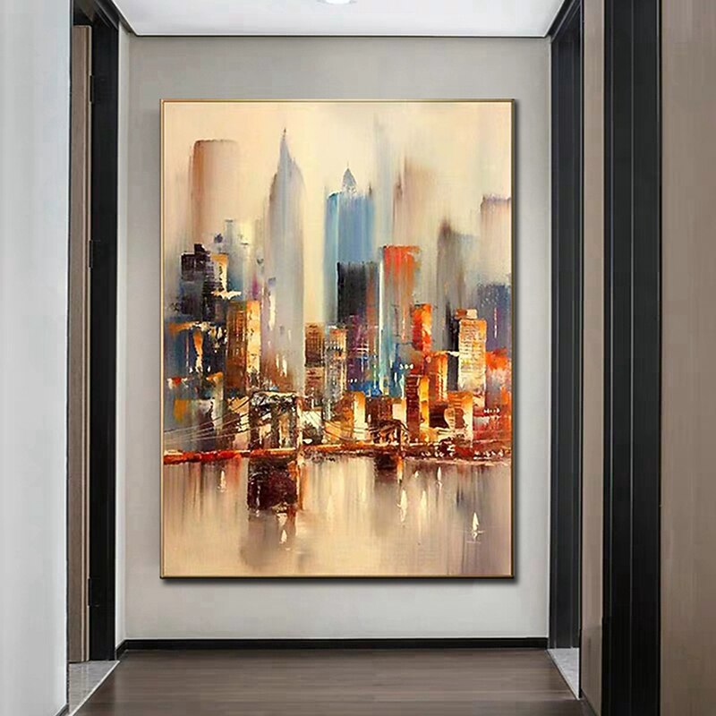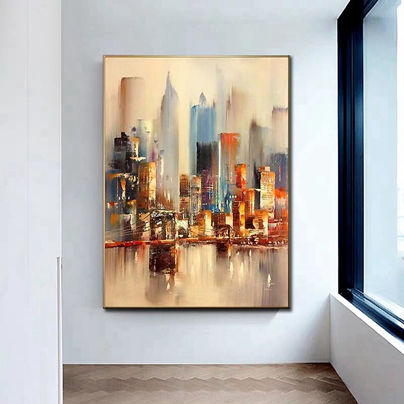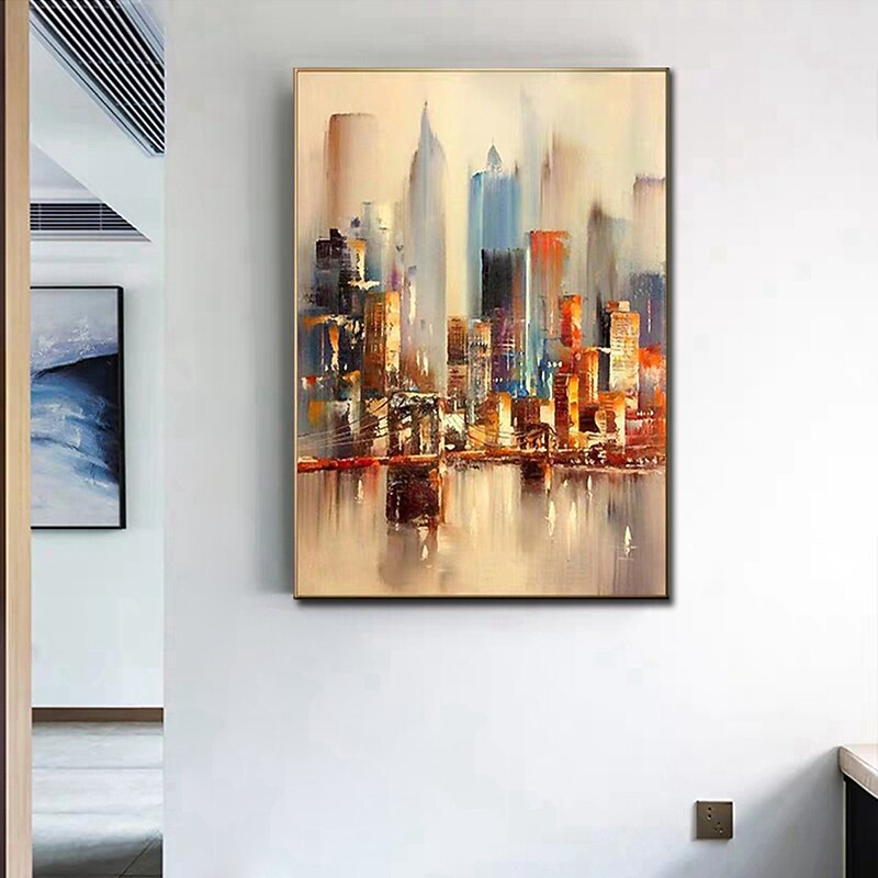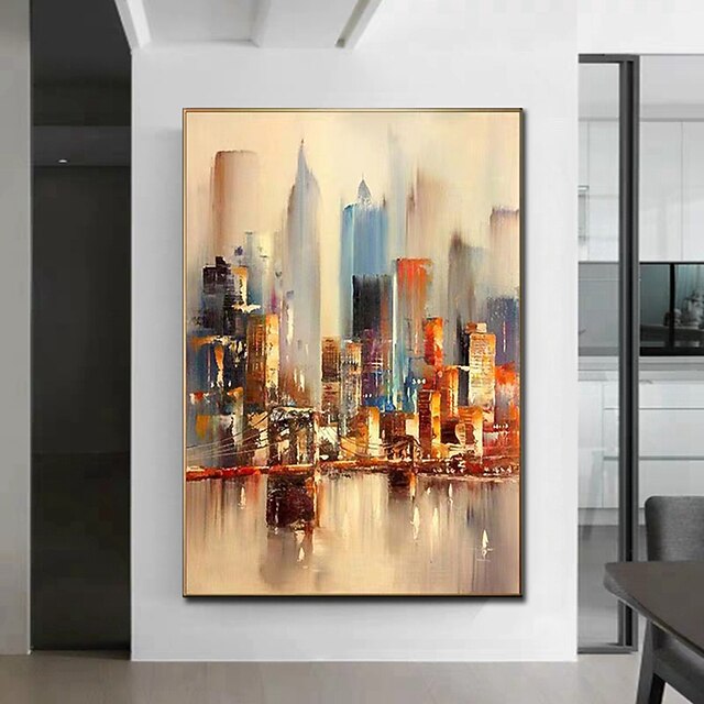 sizzling ! Oil Painting Handmade Hand Painted Wall Art Mintura current Abstract City Landscape Home Decoration Decor Rolled Canvas No Frame Unstretched