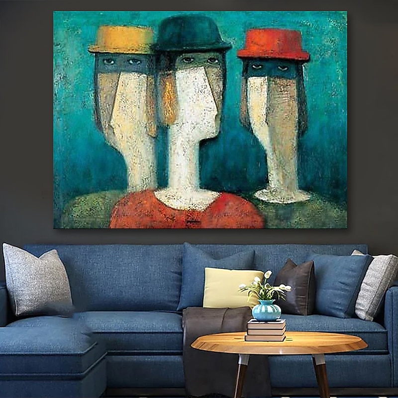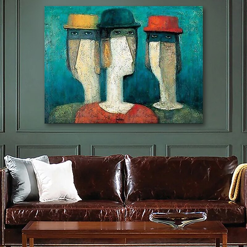 Oil Painting Hand Painted Horizontal Abstract People present-day Rolled Canvas (No Frame)