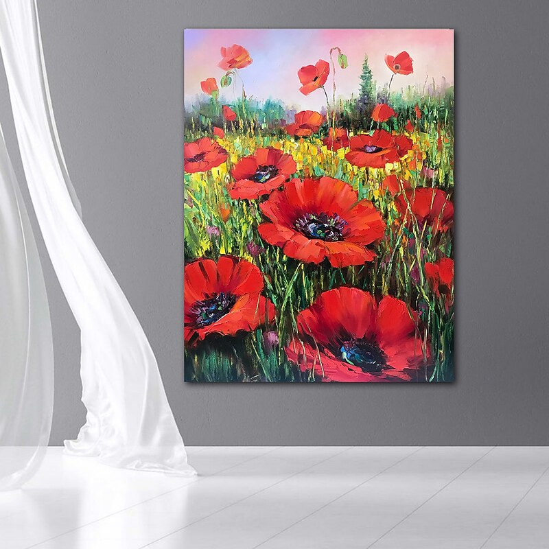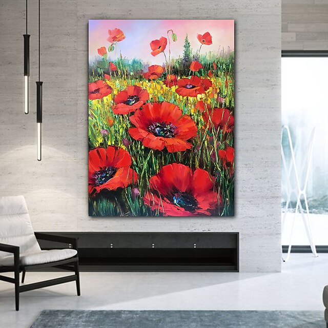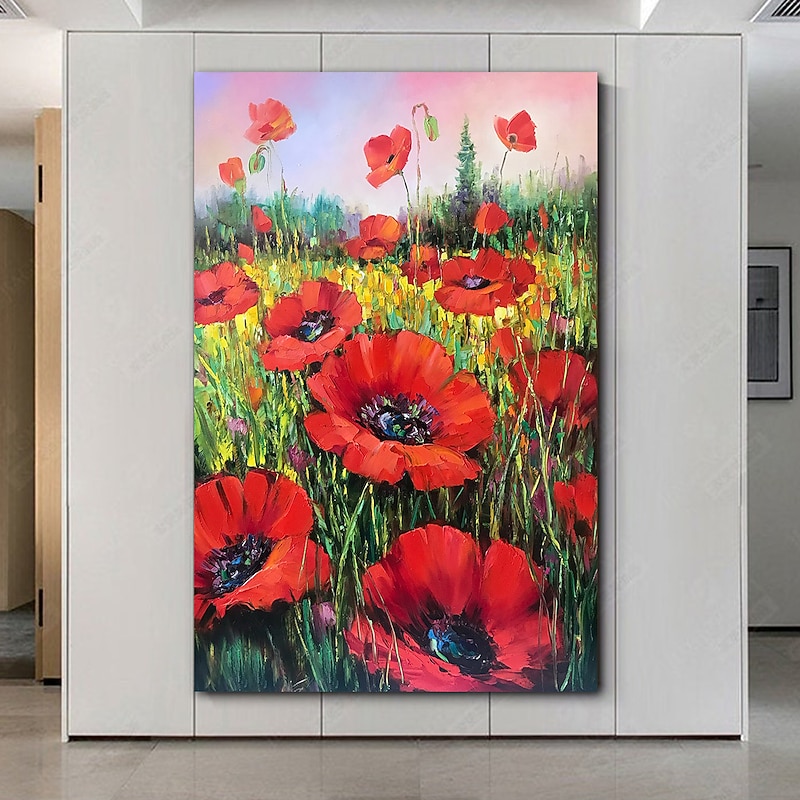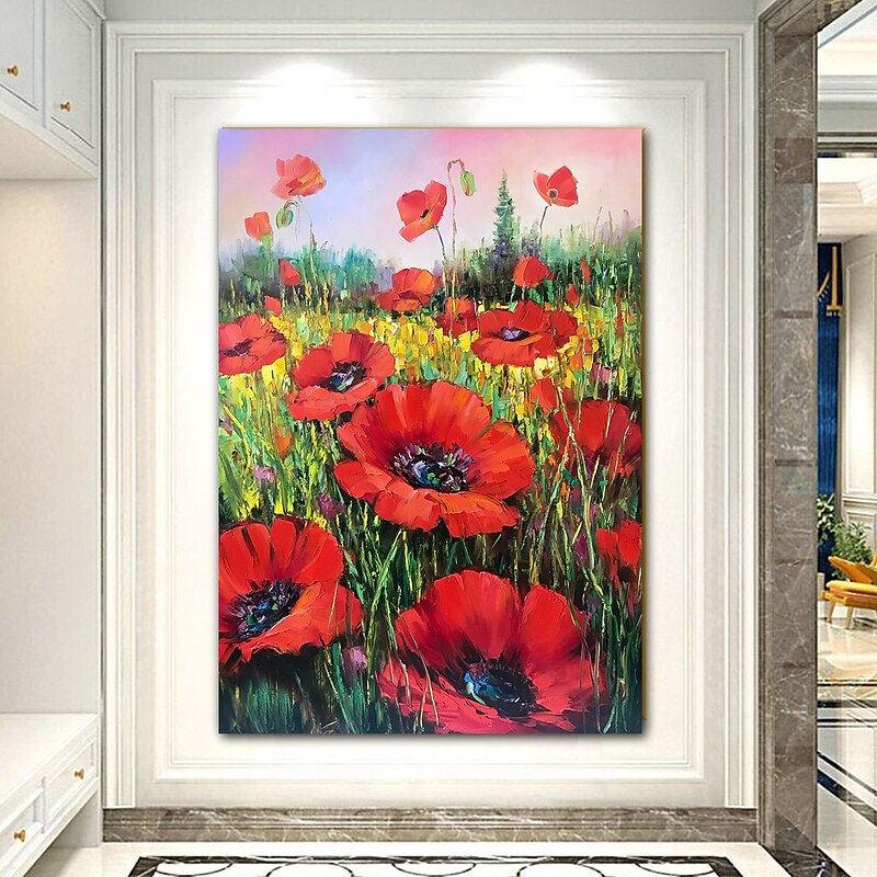 More information about Handmade Oil Painting CanvasWall Art Decoration Abstract Knife PaintingFlowers Red For Home Decor Rolled Frameless Unstretched Painting