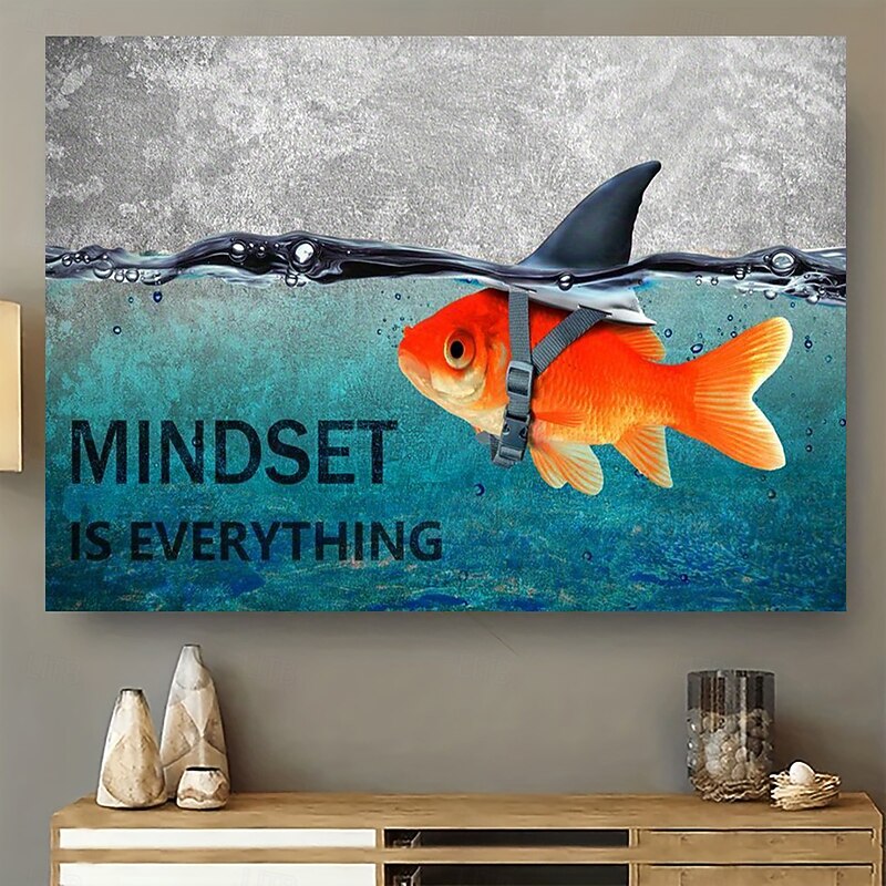 Inspirational Goldfish Shark Canvas Wall Art Poster  Unframed Canvas Print  Office Bedroom Bathroom Decor  Motivational Mindset is Everything Artwork  Home Kitchen Living Room Wall 5