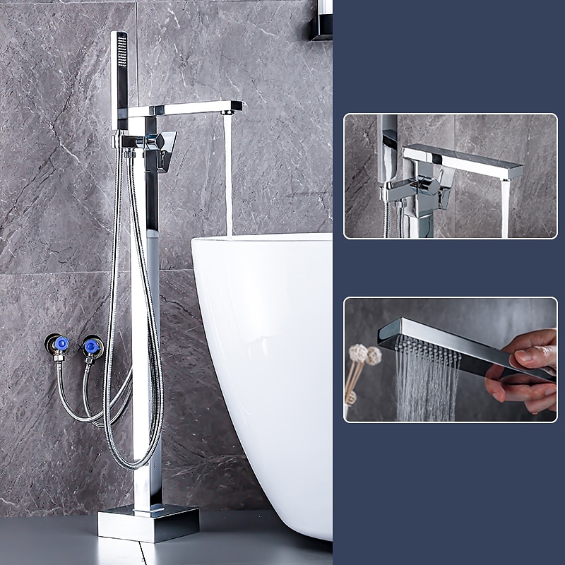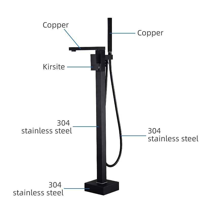 Highlights Premium Brass Material : Made of high-quality chrome-plated brass, this tub filler is durable, anti-rust, anti-corrosion, and designed for long-lasting use. Moreover, its sleek look will fit well in any setting and only needs a simple clean. Hand Shower : The hand sprayer with 150 cm/59'' long stainless steel hose is perfect for the whole body shower. Flexible and detachable design can help you to bathe your child and pet at ease. Also, it can be used to keep the tub clean after use. 360° Swivel Spout : Compare with normal spouts, our 360° swivel spout of the tub faucet is more flexible and convenient. You may adjust its position according to your need. Better water flow ensure that you can enjoy a long and comfortable bath after work. Hot/Cold Waterlins : The stainless steel hot and cold water hoses are designed for large water flow and leak-proof connection. The strong material leaves you with no worry. Floor-mounting Desgin : All the mounting parts are offered, and easy installation is required. Featuring a spout with aerator, it sends no-splash water down to fill the tub quickly, bringing you a comfortable soaking experience. Plus, a hand shower with flexible shower hose offers targeted spray to melt away daily tiredness and adds convenience for bathing children or pets. CEC Registered Product : This product is CEC certified that meet specific standards for water saving. CEC certification is an appliance efficiency regulation implemented by the California Energy Commission in the United States. The purpose of this regulation is to improve the efficiency of power products, save energy, reduce gas emissions and the greenhouse effect. Note: Dear buyer, if the parcel is found to be badly damaged, please take a photo, reject it and contact us for resolution. Because of the size measurements are handmade, so there may be 1-3CM error. Please understand because of the light irradiation or computer display difference, so I can't guarantee photos and real color is 100% the same. Perfect for everyday use. premium materials and excellent craftsmanship ensure long-lasting durability.