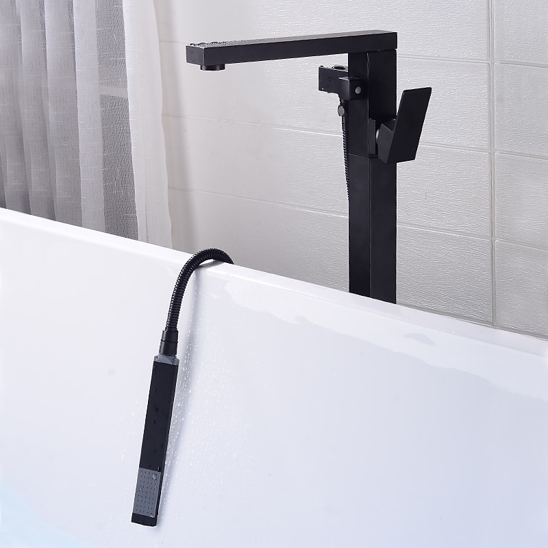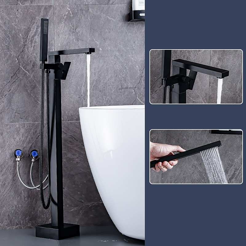 Freestanding Bathtub Faucet, 360° Swivel Spout Floor Mount Standing Tub Filler Single Handle Brass Tap with Hand Shower Sprayer