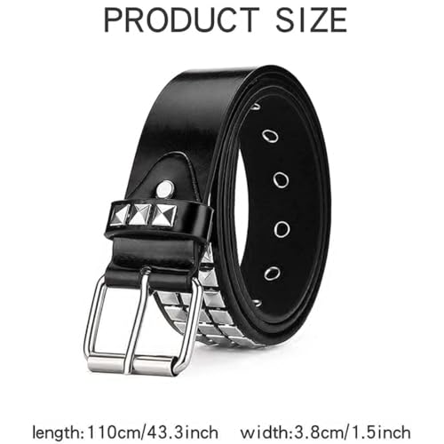 • Belt size: The size of our pyramid rivet belt is approximately. It is 43 inches long and 1.5 inches wide, which is the ideal size for tremendously people. There are numerous holes on it, so you can adjust the tightness of the belt.