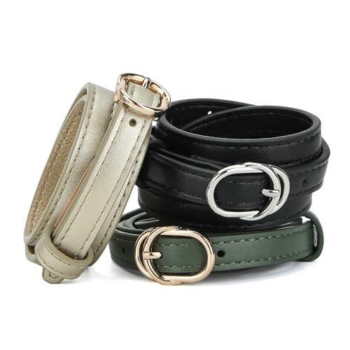 • Versatile: Multiple colors to choose from black-g, brown, white, beige, wine red, gold, green, black-s belts gives more possibilities in daily matching, suitable for kinds of jeans, pants, dress, blouses, etc