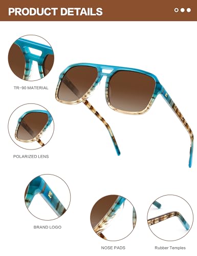 BIRCEN Women Polarized Acetate Sunglasses: Fashion Square Aviator Shades UV Protection for Trendy Laides Travel Beach Outdoor 6
