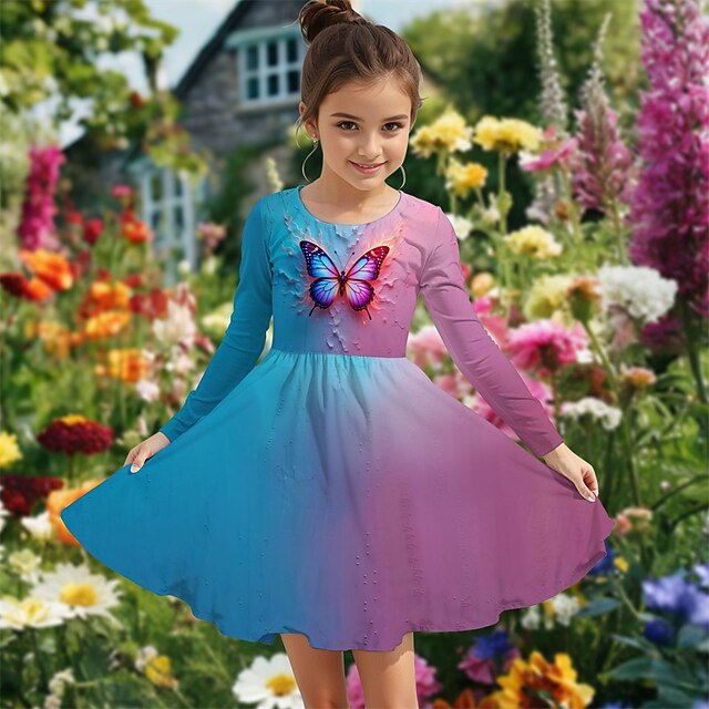 sizzling ! Girls' 3D Butterfly Dress Long Sleeve Summer Spring Vacation Daily Holiday Princess gorgeous Sweet Kids 4-12 Years Casual Dress A Line Dress Knee-length Regular Fit
