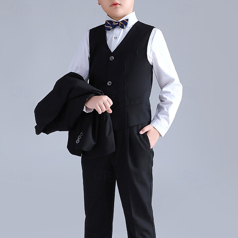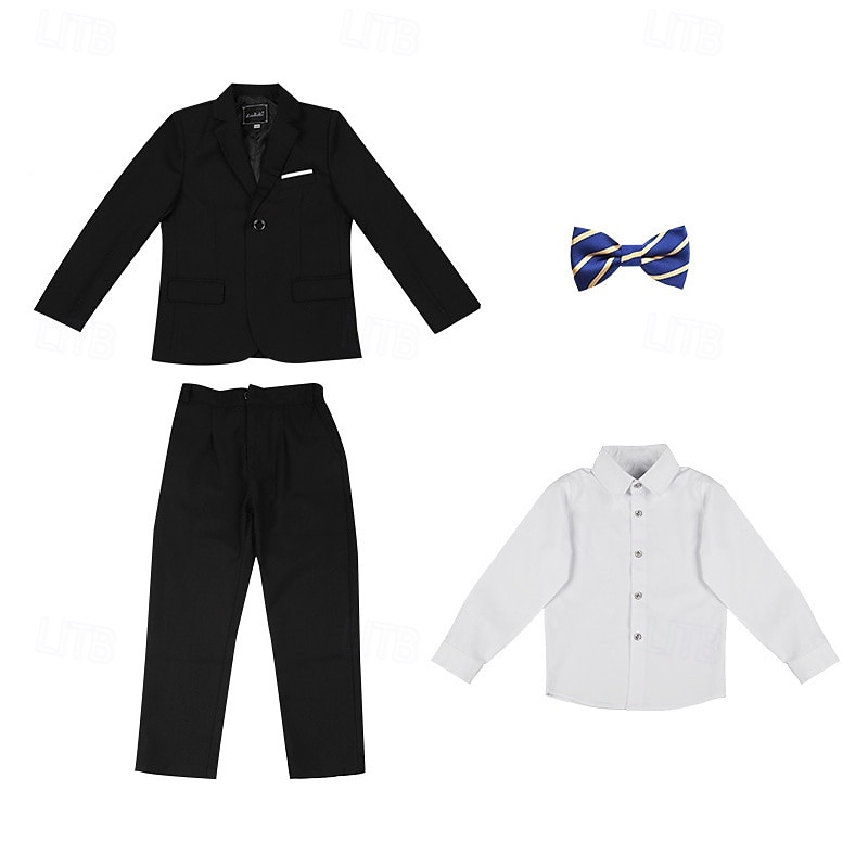 This 4 Pieces Ring Bearer Suit Boys Kids Suit Formal Suit Shirt & Pants Formal Party Valentines Fashion Cool Solid Color Pocket Black Navy Blue Polyester combines elegant design with practical functionality. Every detail has been carefully considered to ensure you get the ultimate possible experience. The first-class construction means this product will serve you well for years to come.