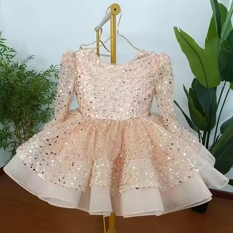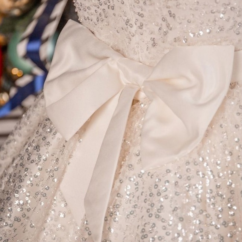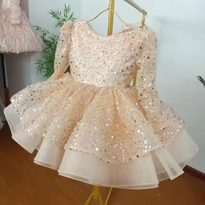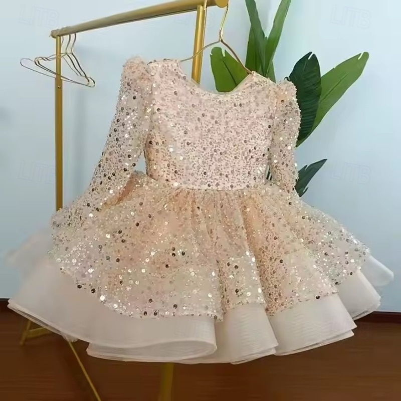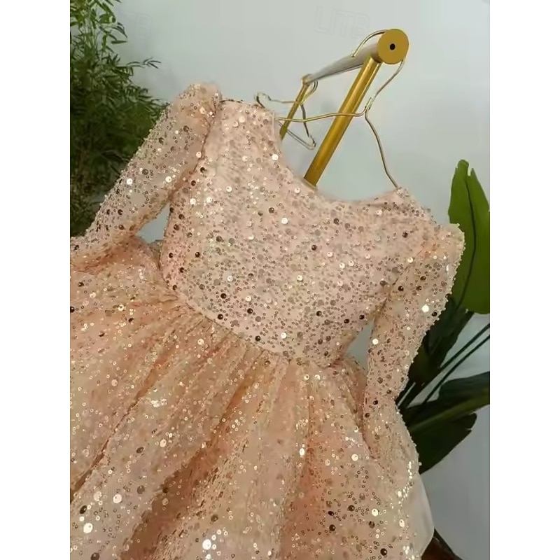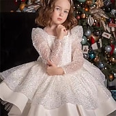 More information about Kids Girls' Party Dress Solid Color Long Sleeve Performance Wedding Party Mesh Princess Sweet Mesh Mid-Calf Sheath Dress Tulle Dress Summer Spring Fall kids White Champagne