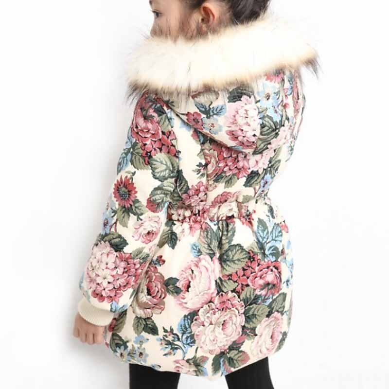 Kids Girls' Down Coat Floral Fashion Outdoor Cotton Coat Outerwear 3-12 Years Fall Navy Blue Beige 11
