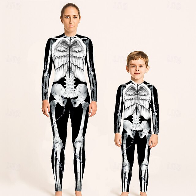 Why Choose Family Halloween Jumpsuit Skull Halloween pattern Street Print Black White Pink Long Sleeve Matching Outfits?