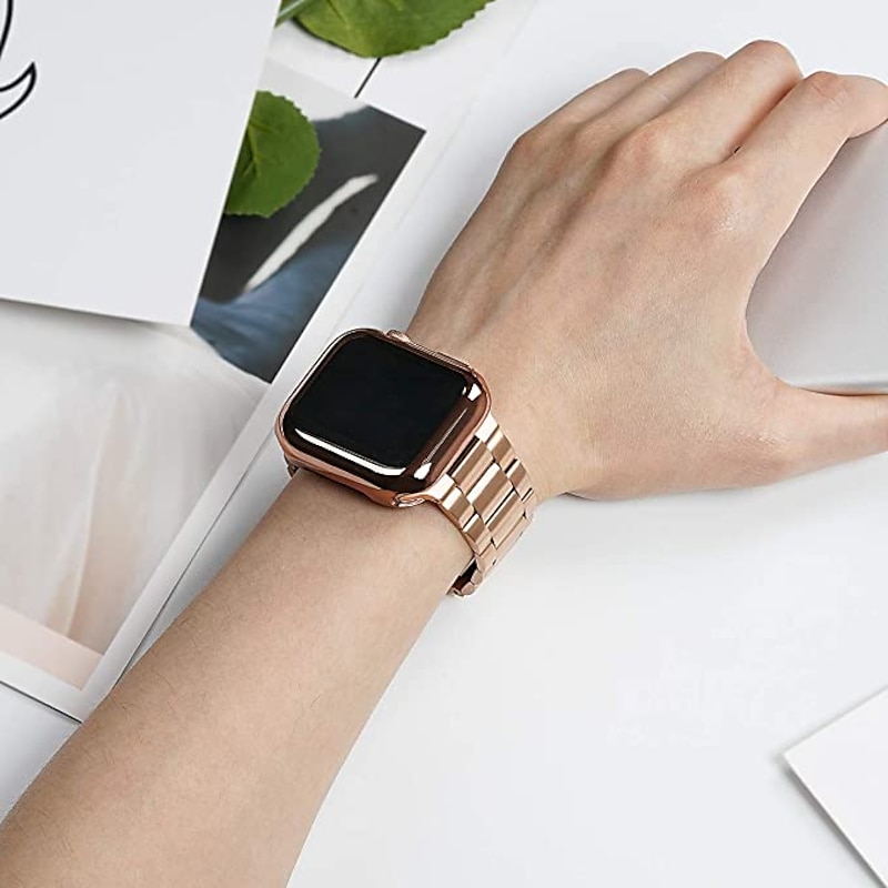 Why Choose Link Bracelet Smart Watch Band with Case Compatible with Apple iWatch 45mm 44mm 42mm 41mm 40mm 38mm Sreies SE 8 7 6 5 4 3 2 1 for Smartwatch Strap Stainless Steel Buckle Shockproof?