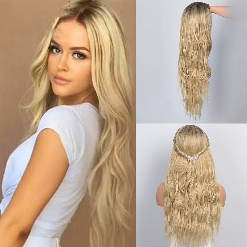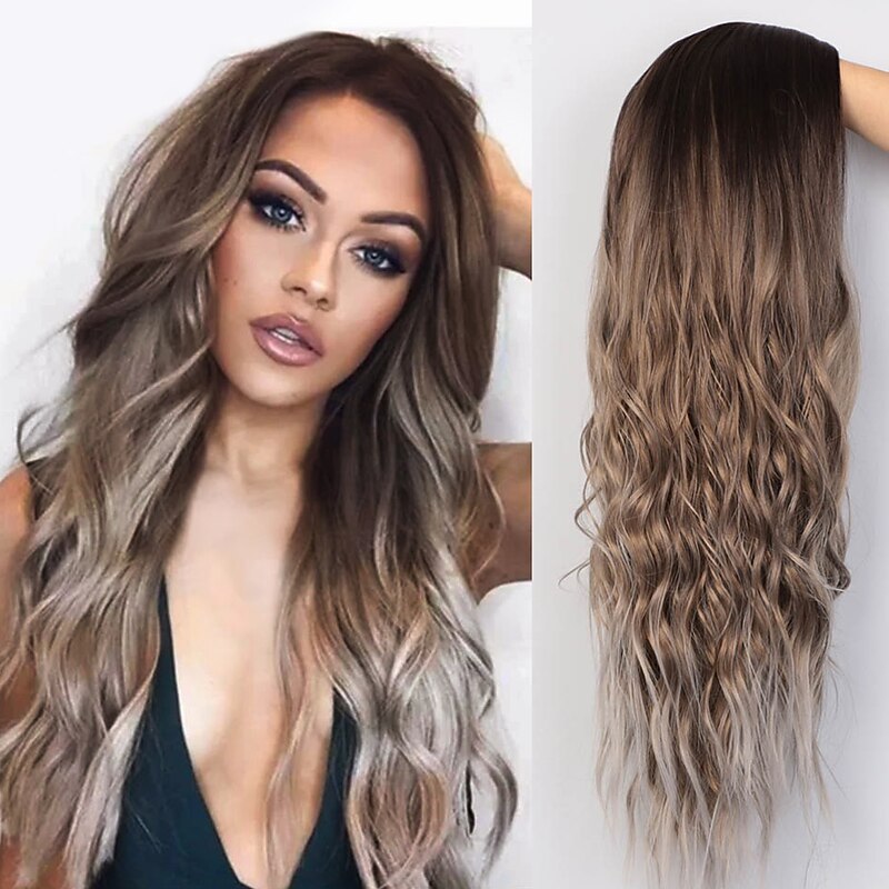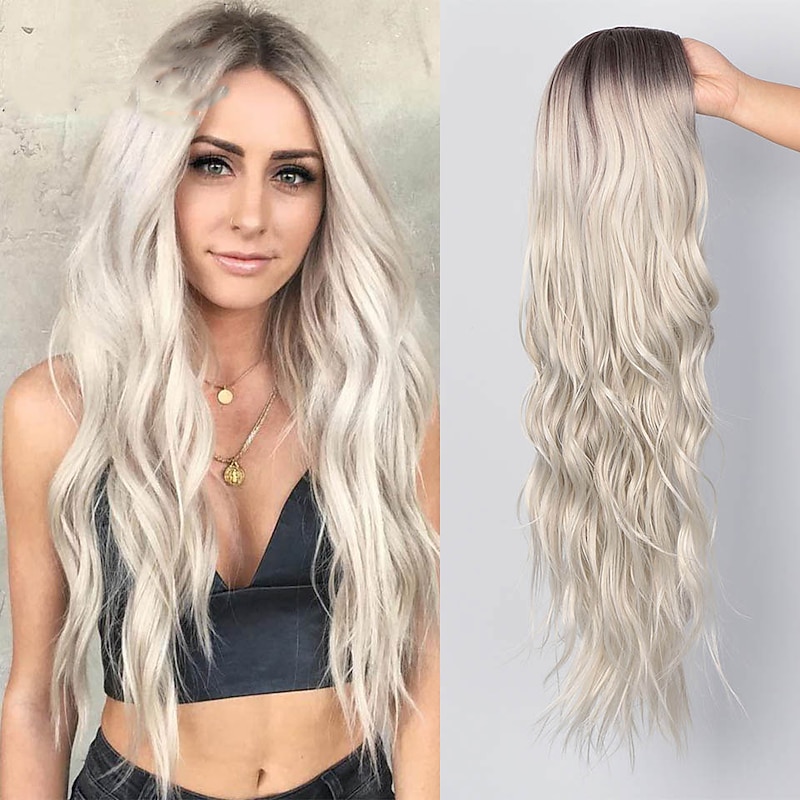 Gray Wigs for Women Synthetic Wigs Long Wavy Wigs for Women Natural Part Side Wig Heat Resistant Party Hair Ombre Blonde Wigs Brizilan Christmas Party Wigs 37