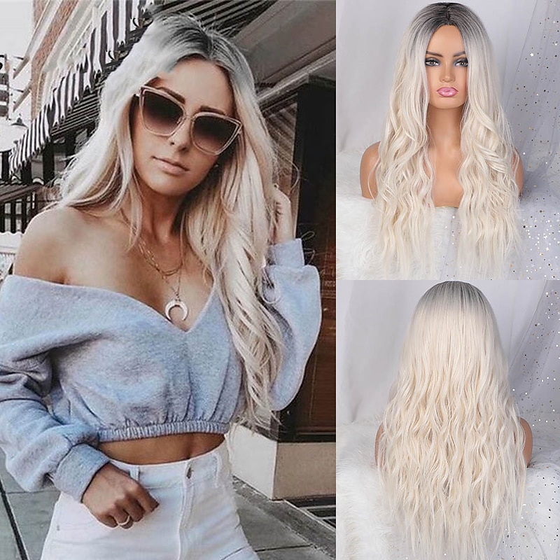 Gray Wigs for Women Synthetic Wigs Long Wavy Wigs for Women Natural Part Side Wig Heat Resistant Party Hair Ombre Blonde Wigs Brizilan Christmas Party Wigs 21