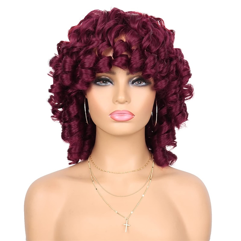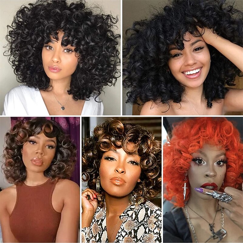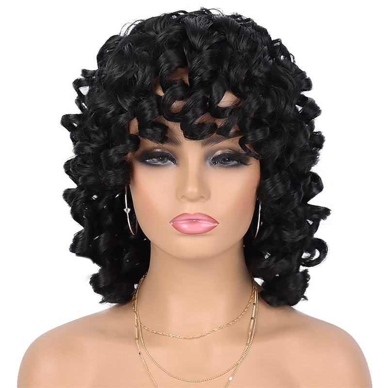 $28.99 - Wig Short Afro Curly Wigs for Black Women Dark Brown Curly Wig with Bangs Fluffy Shoulder Length Wigs Heat Resistant Synthetic Colorful Wigs for Daily Party Use 2025. Shop for cheap Black & African Wigs online? Buy at lightinthebox.com on sale today!