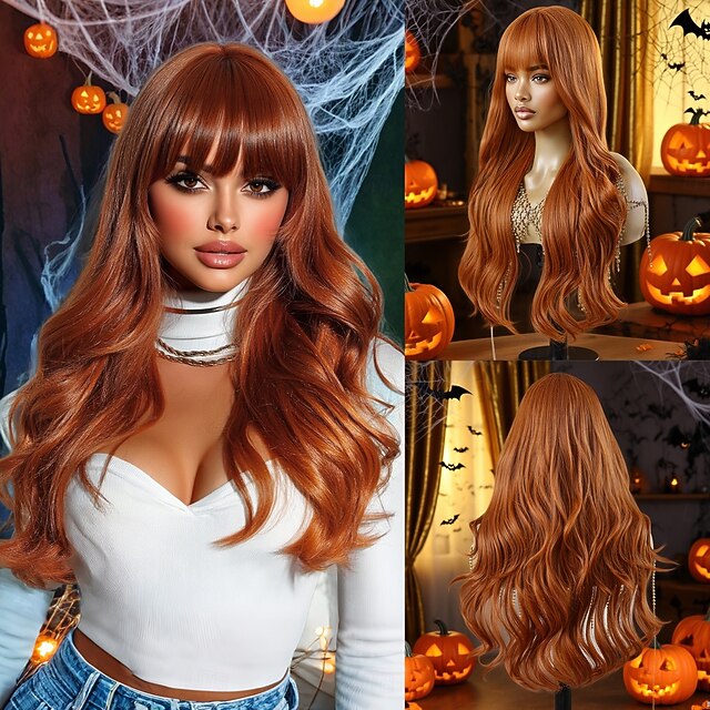 $35.99 - Synthetic Wig Curly Wavy Middle Part Neat Bang Wig 26 inch Auburn Synthetic Hair 26 inch Women's Soft Comfy Orange 2025. Shop for cheap Party Wigs online? Buy at lightinthebox.com on sale today!