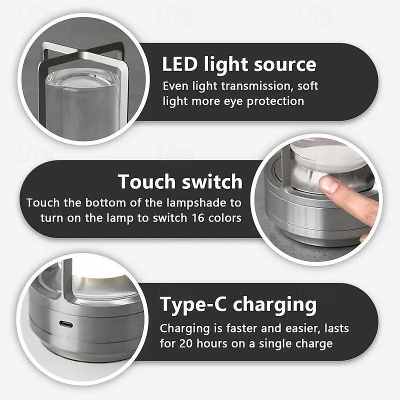 This Portable Metal Desk Lamp, Cordless LED Table Lamp, 16 Color Touch Control Rechargeable Lamp, Stepless Brightness Room Decor Desk Lamp, Bedside Lamp, Night Light, Dining Room Lamp combines elegant design with practical functionality. Every detail has been carefully considered to ensure you get the finest possible experience. The top-grade construction means this product will serve you well for years to come.