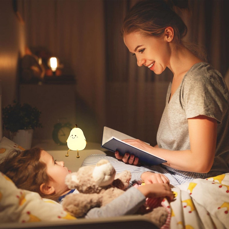 Cute Sleeping Silicone Night Light Gift Bedroom Sleeping Bedside Tap Light LED Pear Shape Night Light 5V USB Rechargeable Dimmable Touch Silicone RGB Desk Lamp Bedroom Decoration Kids Gift Baby Light 13