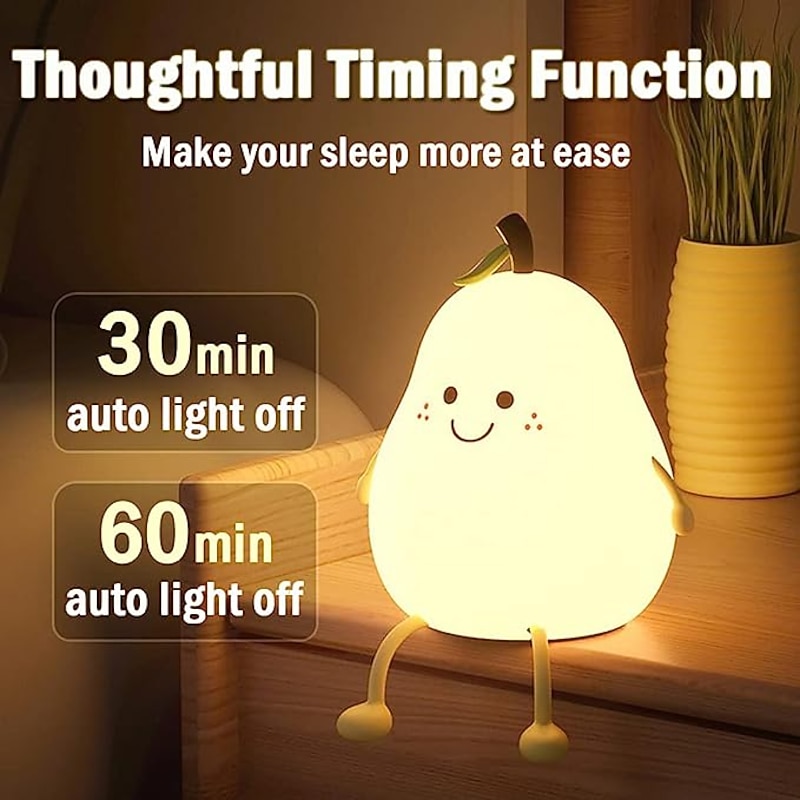 Cute Sleeping Silicone Night Light Gift Bedroom Sleeping Bedside Tap Light LED Pear Shape Night Light 5V USB Rechargeable Dimmable Touch Silicone RGB Desk Lamp Bedroom Decoration Kids Gift Baby Light 19