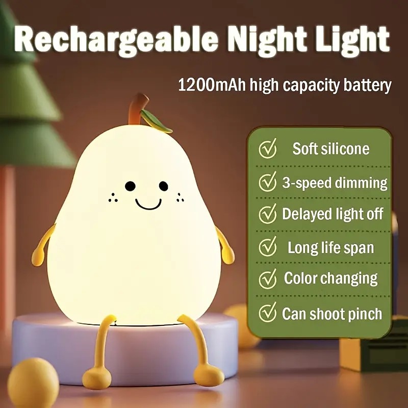 More information about Cute Sleeping Silicone Night Light Gift Bedroom Sleeping Bedside Tap Light LED Pear Shape Night Light 5V USB Rechargeable Dimmable Touch Silicone RGB Desk Lamp Bedroom Decoration Kids Gift Baby Light