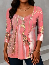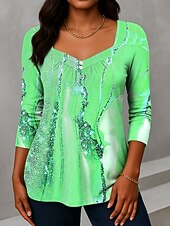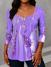 More information about Women's T Shirt Ombre Graphic Elegant Vintage Fashion Long Sleeve Asymmetric Neck Regular Tops Daily Weekend Vacation Wear Buttons Print Pink Purple Green Summer Spring