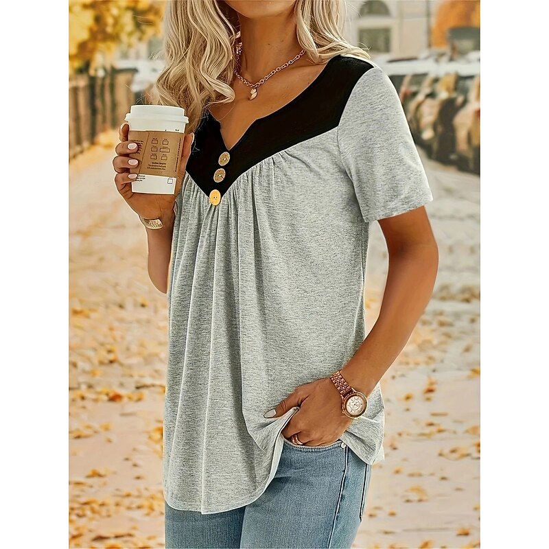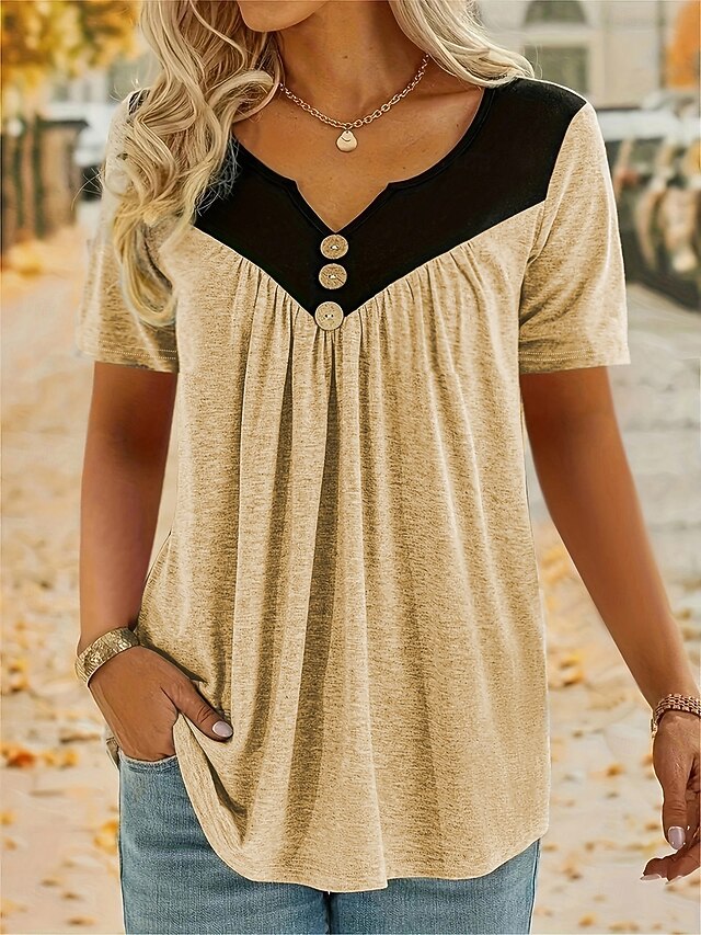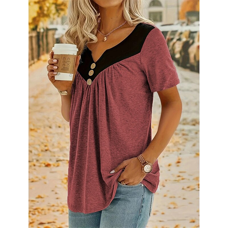 This Women's Summer Tops present-day V Neck Regular Tops Red Green Khaki Gray Summer combines elegant design with practical functionality. Every detail has been carefully considered to ensure you get the best possible experience. The excellent construction means this product will serve you well for years to come.